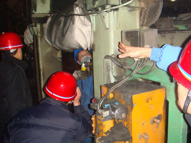 1、该主机是1988年从瑞士引进,投产至今已22年,2003年起陆续发现主机机架多处开裂。经长达7年的焊补加固,主机技术及安全状况仍持续恶化:大梁、立柱、横梁、气包座本体多处继续不断开裂,气冲阀已严重磨损、主油缸与工作台等主要部位多处联接螺栓被拉断脱落。