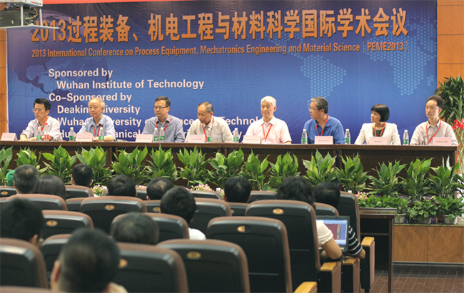 2013年6月15日上午,2013过程装备、机电工程与材料科学国际学术会议(2013 International Conference on Process Equipment, Mechatronics Engineering and Material Science,简称PEME2013)在武汉工程大学多功能报告厅隆重召开。武汉工程大学党委书记吴元欣教授、澳大利亚迪肯大学(Deakin University)孔令学教授、湖北省机械工程学会常务副理事长兼秘书长陈万诚、武汉理工大学陈定方教授、武汉工程大学国际学院院长兼外事处处长李琼、武汉工程大学电气学院书记洪汉玉教授、武汉科技大学汽车与交通工程学院副院长张光德教授应邀出席会议。来自美、英、法、澳大利亚、新加坡、印度、马来西亚、印尼、索马里、加纳等国家的代表10余人参加了学术交流,与会代表120余人。