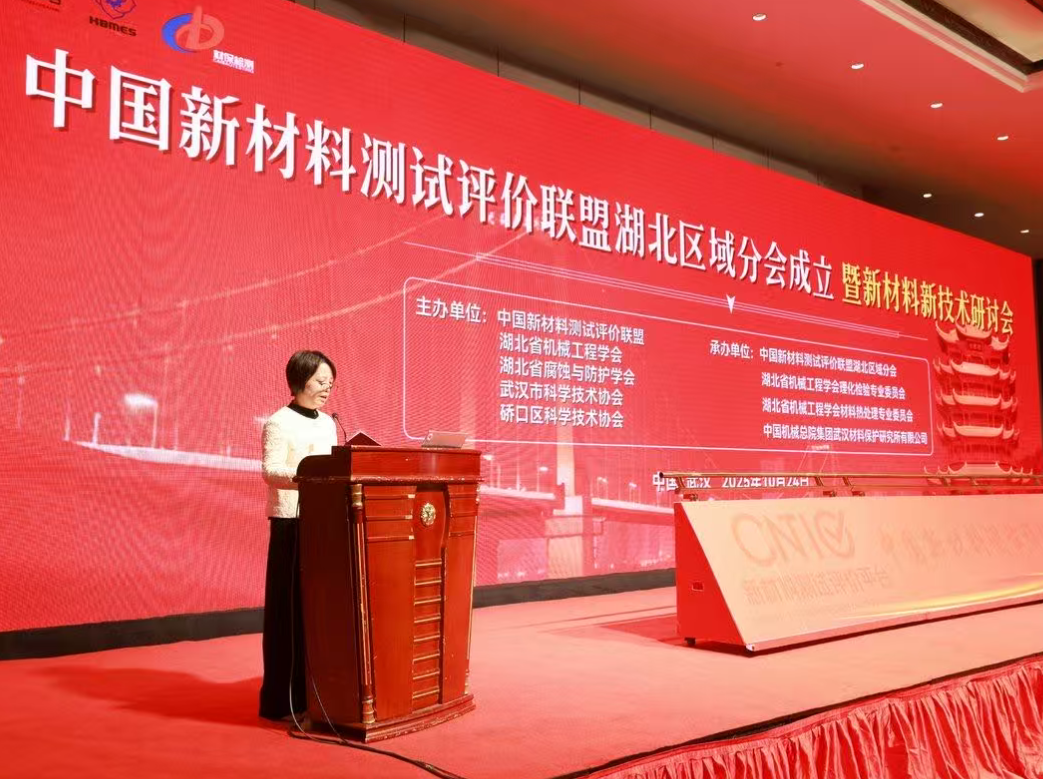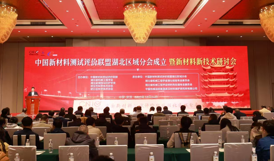 2025年10月24日,湖北省机械工程学会、湖北省腐蚀与防护学会、中国新材料测试评价联盟主办的“中国新材料测试评价联盟湖北区域分会成立暨新材料新技术研讨会”在武汉召开。会议由湖北省机械工程学会理化检验专业委员会、湖北省机械工程学会材料热处理专业委员会、中国新材料测试评价联盟湖北区域分会、中国机械总院集团武汉材料保护研究所有限公司联合承办。