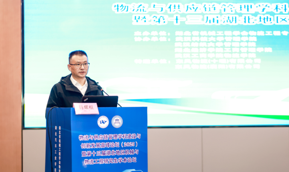 肖耀根在致辞中代表主办方对与会嘉宾的到来表示感谢。他指出,本次论坛以人工智能时代下的物流与供应链管理教育创新为主题,是推动学科高质量发展、促进产学研融合的重要平台,并期待与会者深入交流,共探学科未来,为区域经济发展贡献力量。论坛邀请了教育部物流教指委委员、厦门华夏学院常务副校长陈民伟、长江大学教授李诗珍、重庆工商大学教授龚英,武汉理工大学交通与物流工程学院党委书记肖耀根、副院长曹小华、祝锋,中国物流与采购联合会教育培训部副主任黄颖,武汉科技大学管理学院副院长张洪、武汉纺织大学管理学院副院长周磊、武汉工商学院物流学院常务副院长王猛等专家参会,吸引了来自全国多所高校、科研院所及企业的200余名学者和师生代表参加。