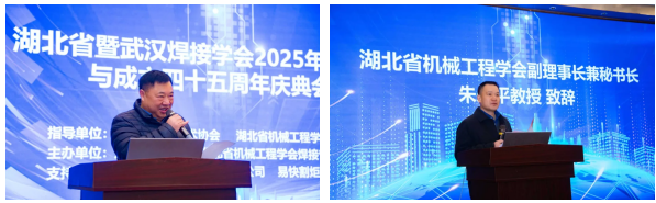 此次会议在湖北省机械工程学会和武汉市科学技术协会的指导下,由湖北省机械工程学会焊接专业委员会和武汉焊接学会联合主办,并得到了武汉鑫华泰焊接技术有限公司和易快割炬科技(湖北)有限公司的大力支持。来自省内高校、科研院所、企事业单位的百余位专家学者齐聚一堂,共庆焊接专业委员会成立四十五周年,研讨焊接技术前沿动态,探索智能焊接发展新路径。湖北省机械工程学会副理事长兼秘书长朱永平、办公室主任蔡喆,武汉市科学技术协会学会国际部部长彭竹春受邀参加会议。焊接专业委员会秘书长余圣甫主持会议。