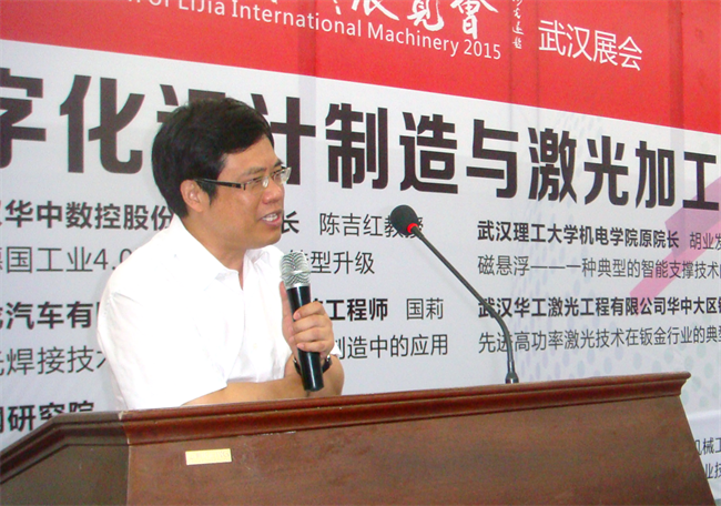 2015年6月26日在武汉国际博览中心,由我会和湖北省暨武汉激光学会、国家激光加工产业技术创新战略联盟联合举办了“数字化设计制造与激光加工技术论坛”。该论坛是“2015第四届武汉国际机床展览会”的配套学术论坛之一,主题是“先进制造与创新发展”,参会代表160人。论坛由我会常务副理事长兼秘书长陈万诚主持。