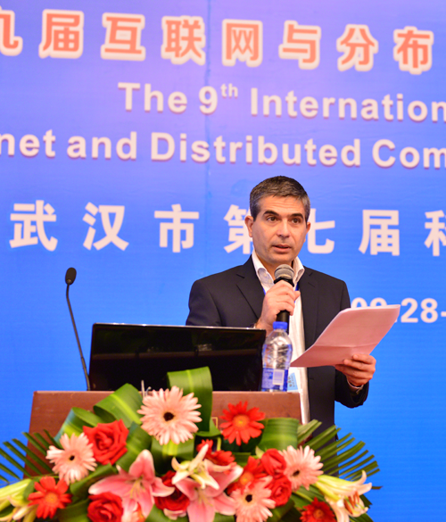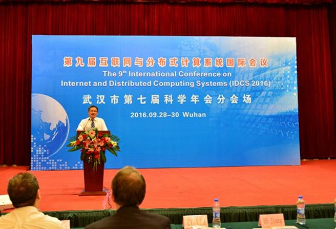 今秋时节,丹桂飘香。武汉市第七届科学年会分会场—第九届互联网与分布式计算系统国际会议于2016年9月28日至30日在武汉楚天粤海国际大酒店成功举办。本次会议由武汉机械工程学会和武汉理工大学主办,华中科技大学、武汉大学、武汉.中国光谷物联网产业技术创新战略联盟等单位协办。会议主题是:健康、协同、创新与可持续发展。中国工程院院士姜德生教授、原武汉理工大学副校长严新平教授、武汉理工大学副校长刘祖源教授、荷兰代尔夫特大学交通与物流学院常务副院长Lodewijks教授、意大利Fortino教授、加拿大Weiming Shen教授、英国Fatta教授、澳大利亚Yang Xiang教授、武汉市科协学会部龚秀成部长、秦冕科长、湖北省机械工程学会副理事长陈万诚高工等专家和嘉宾出席会议开幕式。来自中国、荷兰、意大利、加拿大、英国、澳大利亚、日本、美国等国家的高校、科研机构和企业代表等约240人参加会议。会议由武汉理工大学物流工程学院副院长李文锋教授主持。