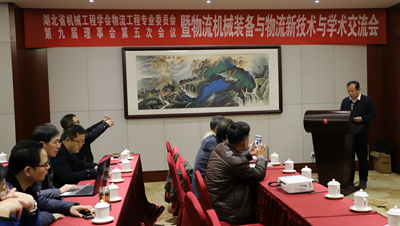 湖北省机械工程学会物流工程专业委员会第九届理事会第五次会议暨物流机械装备与物流新技术交流会于2018年12月22日在湖北省赤壁市举行。来自省内高校、研究院所和有关企业的30余名代表参加,主题是“物流装备的自动化、智能化发展”。湖北省机械工程学会陈万诚监事长出席了会议。会议由专委会秘书长邵新建主持。