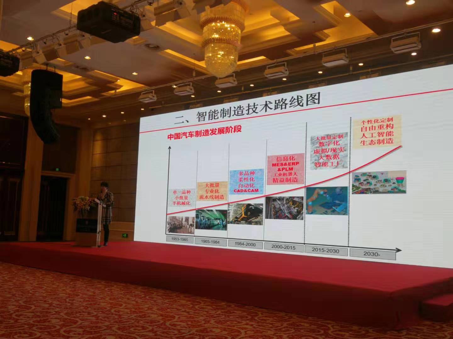 东风汽车公司资深专家邹恒琪作报告,题目是:汽车制造转型升级之智能之路