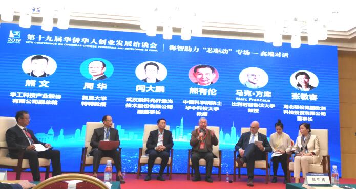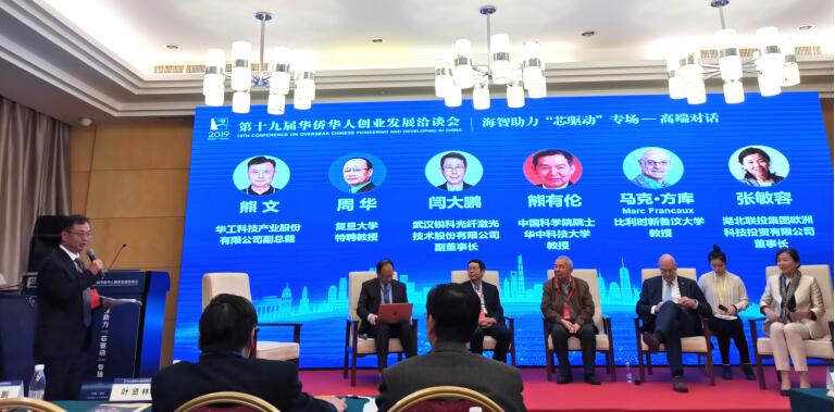 会议主旨报告环节结束后,华工科技产业股份有限公司熊文副总裁主持高端对话环节。中国科学院院士、华中科技大学教授熊有伦,比利时新鲁汶大学教授马克·方库,武汉锐科光纤激光技术股份有限公司副董事长、总工程师、华中科技大学武汉光电国家实验室教授闫大鹏,复旦大学特聘教授周华,湖北联投集团欧洲科技投资有限公司董事长张敏容参与其中并发表精彩讲话。熊有伦院士对三个主旨报告的内容作了充分肯定,并表示在从机械化、电气化,到数字化、智能化的发展过程中,智能制造与芯片、柔性电子、轻量化研究息息相关,人和人、人和自然、人和机器皆能和谐发展才是真正的和谐发展。最后,院士、专家们热切期待,在芯片、激光、汽车、钢铁、化工产业的技术创新及产学研合作等领域内,湖北省能够有更快的发展和更广阔的前景。 作为历年“华创会”引进人才,武汉锐科光纤激光技术股份有限公司副董事长闫大鹏表示,湖北芯片产业发展离不开人才支撑,在引入人才上,要遵循产业链发展需求。复旦大学特聘教授周华则提出,湖北芯片产业发展应该“换道超车”,他建议围绕武汉国家存储器基地,做强湖北芯片产业链生态。