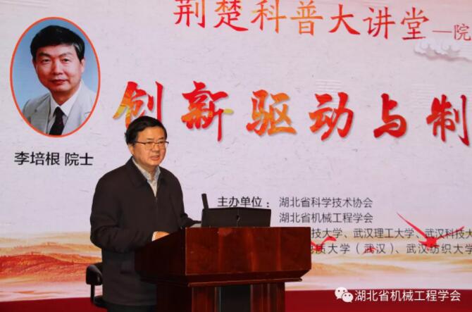 为深入贯彻习近平总书记关于科技创新、科学普及是实现科学发展的两翼,把科学普及放在与科技创新同等重要的位置的指示精神,根据省领导要求和省科协“五个一科普工程”安排,2月28日,由湖北省科学技术协会主办、湖北省机械工程学会承办、华中科技大学等7所高校协办的“荆楚科普大讲堂”院士专家系列科普报告会首场活动在洪山礼堂如期举办。中国工程院院士、中国机械工程学会理事长、湖北省制造强省建设专家咨询委员会主任李培根教授作了“创新驱动与制造强国 ”的主题报告,为大力实施省科协“五个一科普工程”拉开了序幕。