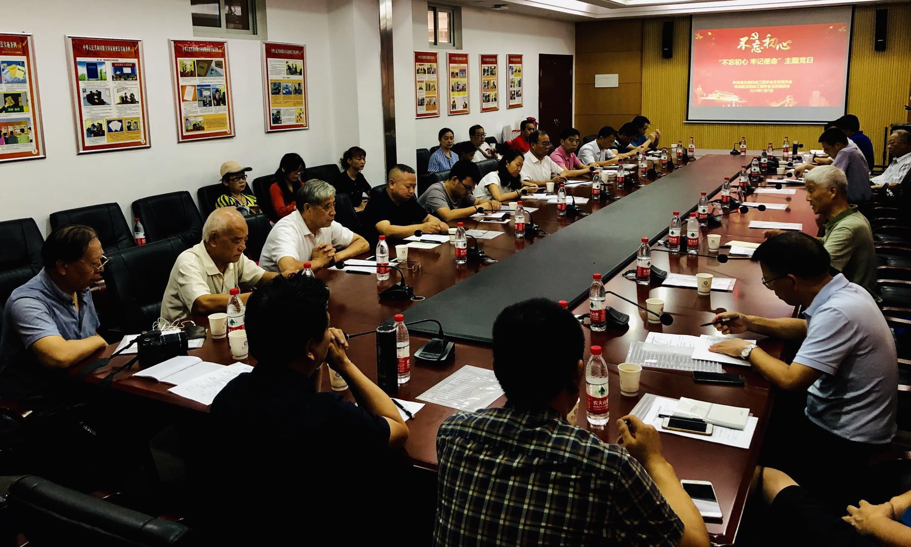 为了纪念中国共产党成立98周年华诞,深入学习习近平总书记关于守初心、担使命,找差距、抓落实,切实搞好“不忘初心,牢记使命”主题教育活动的讲话精神,湖北省机械工程学会党支部于 2019年7月7日在湖北工业大学举办了主题党日讲党课活动。学会党支部全体党员、监事会监事、专兼职副秘书长和各专业委员会秘书长参加了本次主题党日活动。主题党日活动特邀省科协新任党组成员刘侃副主席给全体党员上党课。
