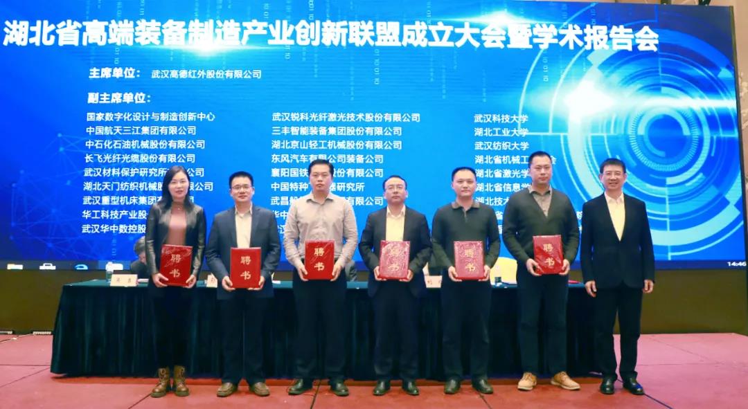 成立大会上,颁发了湖北省高端装备制造产业创新联盟主席单位、副主席单位牌匾和证书。颁发了秘书长和副秘书长证书。联盟主席单位武汉高德红外股份有限公司黄立董事长发表讲话。