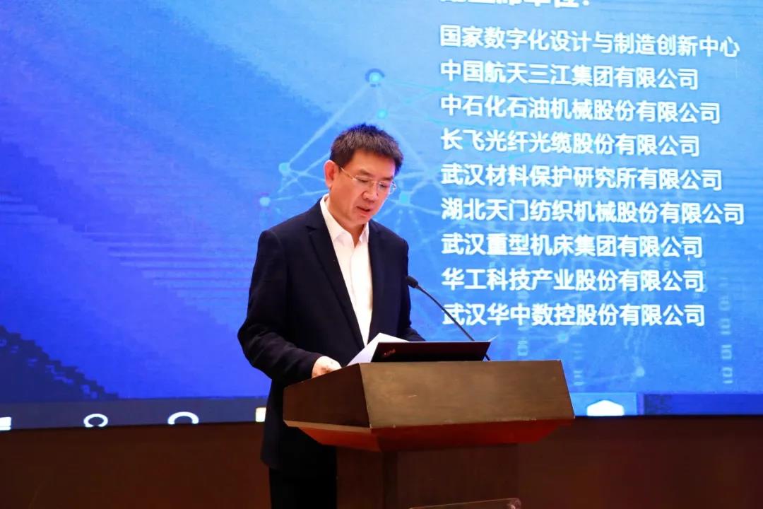 湖北省科协党组成员、副主席刘侃致词并宣读省科协“关于同意成立湖北省高端装备制造产业创新联盟的批复”文件
