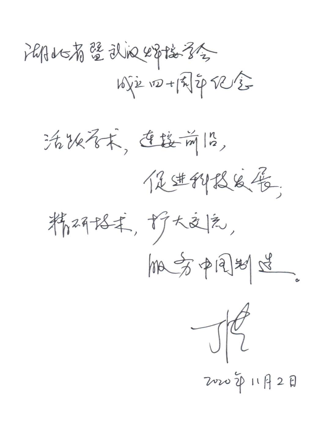 湖北省机械工程学会理事长丁汉院士题词祝贺焊接专委会成立40周年