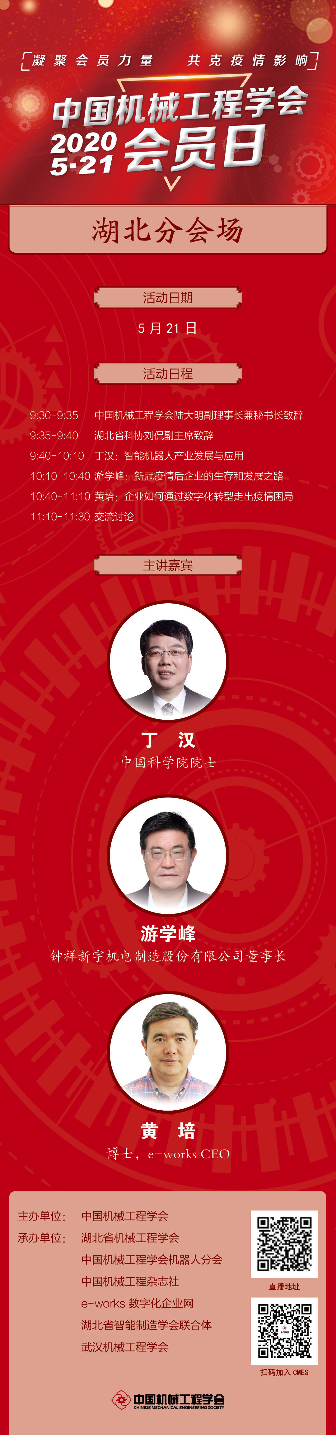定于2020年5月21日(星期四)举办中国机械工程学会会员日活动。本次活动通过线上会议的方式开展专题学术交流,有关事项如下: