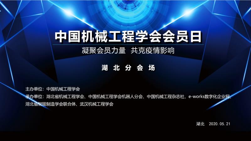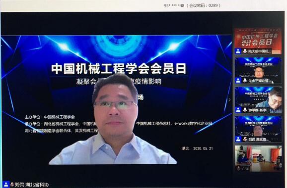 2020年5月21日,中国机械工程学会会员日湖北分会场“凝聚会员力量,共克疫情影响”专题学术交流活动采用腾讯会议的方式在线上隆重召开,拉开了2020年中国机械工程学会会员日活动的序幕。245位行业同仁参会及观看直播。本次会议由中国机械工程学会主办,湖北省机械工程学会、中国机械工程学会机器人分会、中国机械工程杂志社、e-works数字化企业网、湖北省智能制造学会联合体、武汉制造业信息化产业联盟、湖北省机电一体化技术应用协会、武汉机械工程学会共同承办。