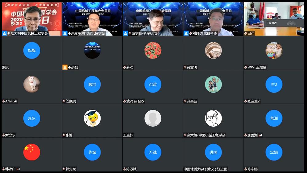 中国机械工程学会第十一届六次常务理事会议决议,自2020年起,每年的5月21日为“中国机械工程学会会员日”,通过学会专业分会、各省区市学会相对集中、统一的开展内容丰富,形式多样的会员日活动,进一步增强学会会员的荣誉感和归属感。我会响应号召,迅速采取行动,联络会员单位,积极开展线上专题学术交流。会议由我会秘书长朱永平教授主持,中国机械工程学会陆大明副理事长兼秘书长、湖北省科协刘侃副主席分别在会中致辞。