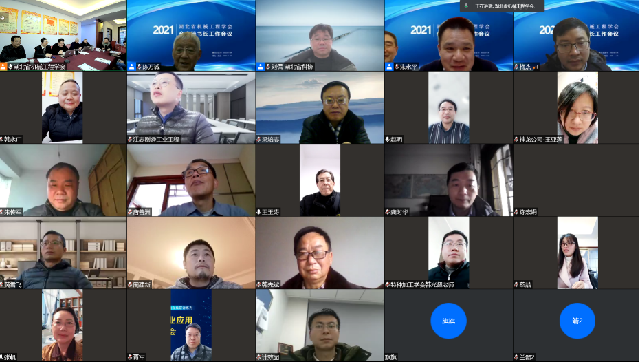 1月23日,湖北省机械工程学会召开2021年全省秘书长工作会议,会议主会场设在学会秘书处。应疫情防控要求,学会全体正、副秘书长及各专业委员会、各市学会正、副秘书长采用线上与线下结合的方式参会,到会30余人。中国机械工程学会常务副理事长张彦敏、湖北省科协副主席刘侃线上指导。湖北工业大学国际学院何涛院长主持会议。