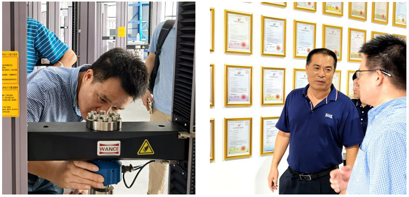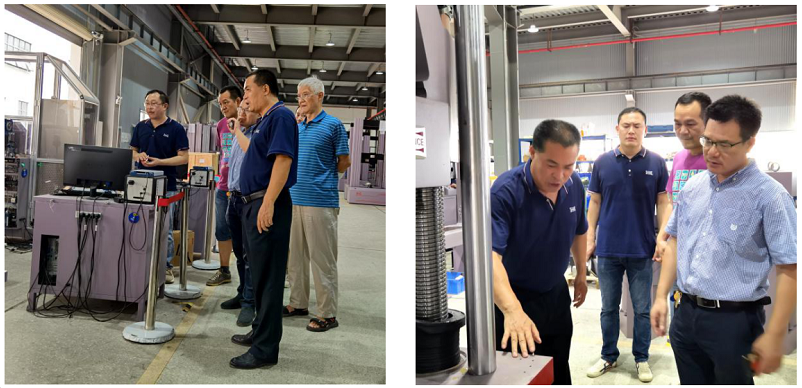 在安建平董事长和方先明总裁等人的全程陪同下,大家参观了公司制造及研发部门。安建平董事长对公司重点项目及发展规划作详细介绍。作为产品研发、材料分析、质量控制方面不可或缺的试验仪器,万测试验机解决方案广泛应用于科研、教育、国防、商检、制造和品控等领域,为全球的航空航天、国防军工、科研院所、高等院校、工程质检、检定认证、汽车船舶、轨道交通、桥梁土木、消费类电子、纺织、冶金、化工、医疗、电力、进出口检验等行业提供可靠的力学测试数据。