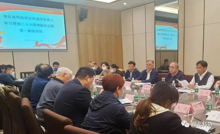 2022年11月18日,湖北省科协党组成员、副主席孙击翔主持召开学会党组织负责人学习贯彻党的二十大精神座谈会。