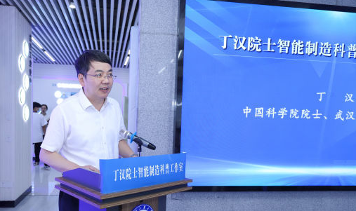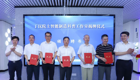 6月30日,在湖北工业大学实训楼,全国首个以院士领衔命名的智能制造科普工作室——“丁汉院士智能制造科普工作室”(以下简称“科普工作室”)揭牌成立。