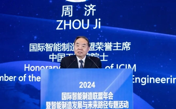 杨华勇院士在“2024智能制造科技进展交流专题活动”上致辞,他强调智能制造是制造业创新发展的主要技术路线,正经历从数字化制造到数字化网络化智能化制造的演进。周济院士、杨华勇院士共同为入围“2024世界智能制造十大科技进展”的项目颁发证书。