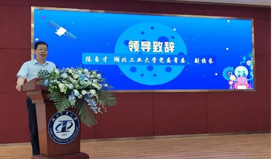湖北工业大学党委常委、副校长陈自才在活动开幕式上代表学校致辞,并寄语学校师生,希望把智能制造领域优秀科技成果以最通俗的语言生动展现出来,引导中小学生学科学、爱科学,锻炼科学思维,学习科学方法,感悟科学精神,为将来培养更多优秀的创新型后备人才贡献湖工力量。