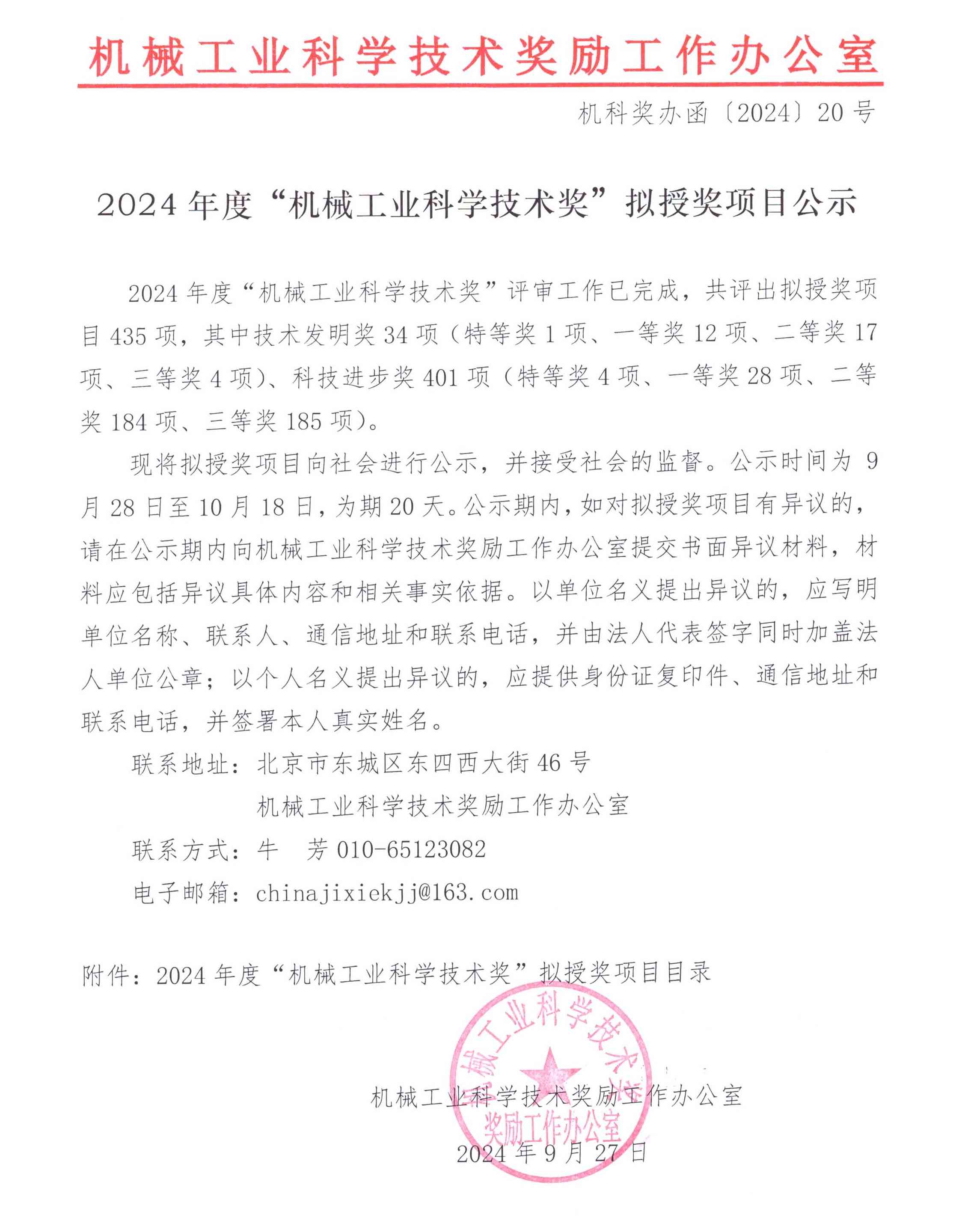 >> 2024年度“机械工业科学技术奖”拟授奖项目公示