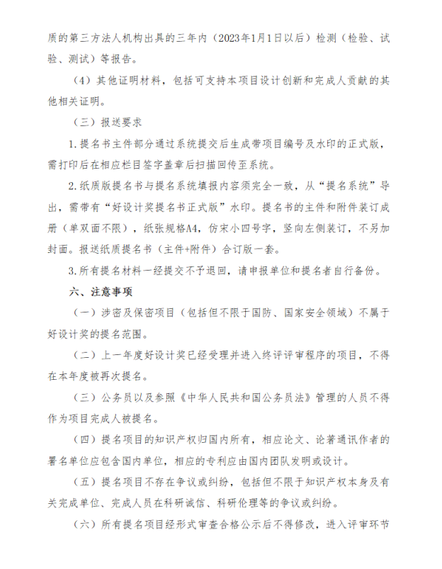 2.《好设计奖提名书(样表)》